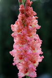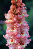 Светло-лососевый, на нижнем лепестке красное пятно на желтой подложке, высота до 150 см, колос плотный, держит 10-12 открытых цветков.